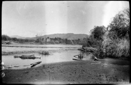 Ämnesord: berg, strömmande vatten, buskar, sandbankar |