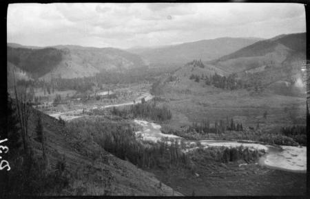 Ämnesord: berg, skog, moln, floddalar, strömmande vatten, erosion, buskar, gran, branter |