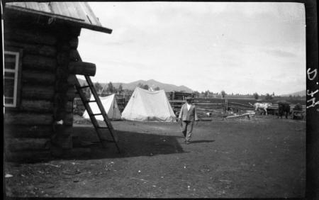 Ämnesord: forskningsresor, stockhus, häst, tält, gårdsplaner, kärror, gårdsbyggnader, gårdsbygge |
