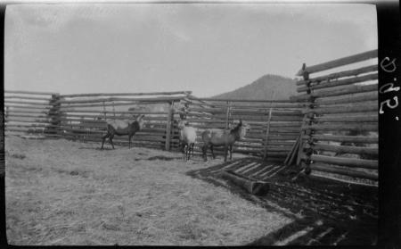 Ämnesord: inhägnader, husdjur, stegar, halm, dryckeskärl, hjortdjur, hö |
