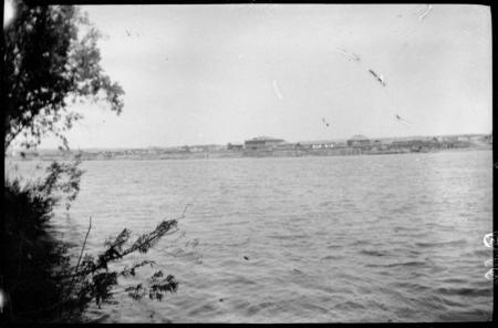 Ämnesord: stadsbild, strömmande vatten, stockhus, buskar |