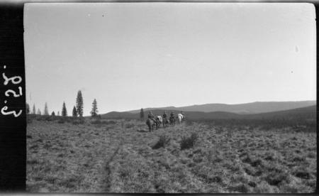 Ämnesord: forskningsresande, ryttare, häst, gran, bergstrakter, betesmarker |