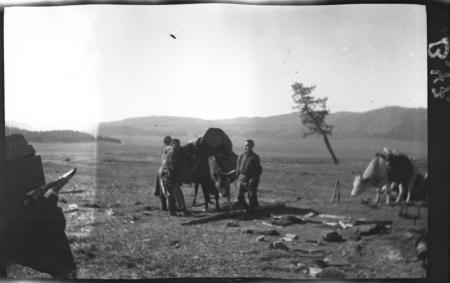 Ämnesord: berg, skog, läger, urbefolkning, bagage, kor |