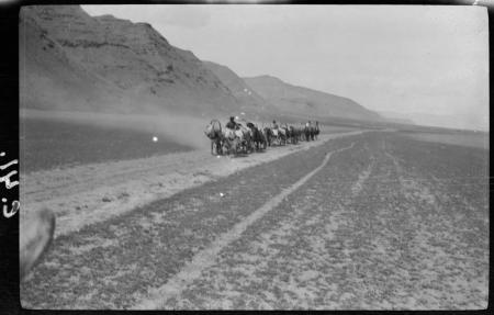 Ämnesord: berg, vägar, forskningsresande, häst, hästfordon, karavaner |