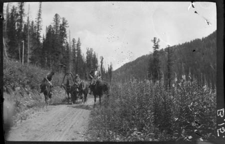Ämnesord: blommor (växter), berg, vägar, forskningsresande, ryttare, gran, hästfordon |
