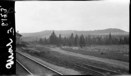 Ämnesord: inhägnader, järnvägsbyggnad, skog, vägar, gran, rälsar |
