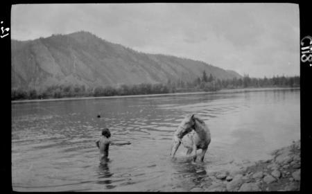 Ämnesord: berg, floddalar, urbefolkning, buskar, häst, stenar (naturligt objekt) |