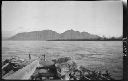 Ämnesord: berg, strömmande vatten, buskar, flotta, åror, strandlinje, rep, filt |