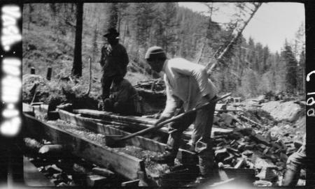 Ämnesord: ryssar, guldvaskning, arbetsredskap, skog, bäckar, lärkträd, stenar (naturligt objekt) |