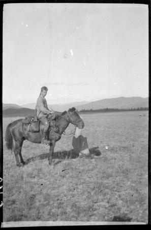 Ämnesord: minnesmärken, berg, forskningsresande, gevär, ryttare, häst |