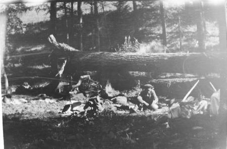 Ämnesord: skog, läger, forskningsresande, buskar, lärkträd, kokkärl |