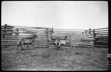 Ämnesord: inhägnader, träkonstruktioner, halm, hjortdjur |