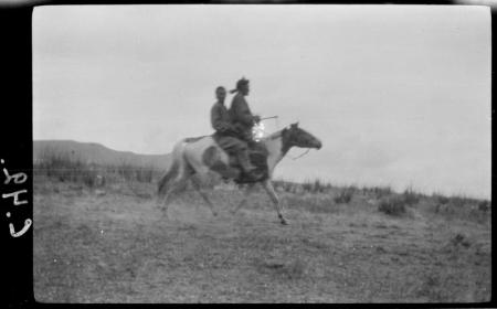 Ämnesord: berg, urbefolkning, buskar, ryttare, stepp, häst |