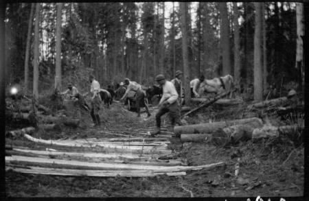 Ämnesord: arbetare, skog, vägarbeten, forskningsresande, häst, timmer |