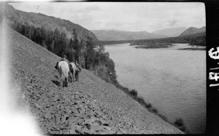 Ämnesord: öar, berg, skog, forskningsresande, floddalar, strömmande vatten, erosion, buskar, häst, gran, stigbyglar |